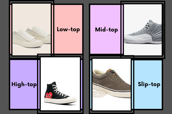 • High-top: High-top là dòng Sneaker có cổ, có độ cao che đi mắt cá chân và cao hơn giày mid-top. So với những dòng giày khác, thì High-top thường thô và nặng hơn. Vậy nên, những người chọn High-top thường sử dụng để chơi thể thao hoặc diện vào mùa đông.