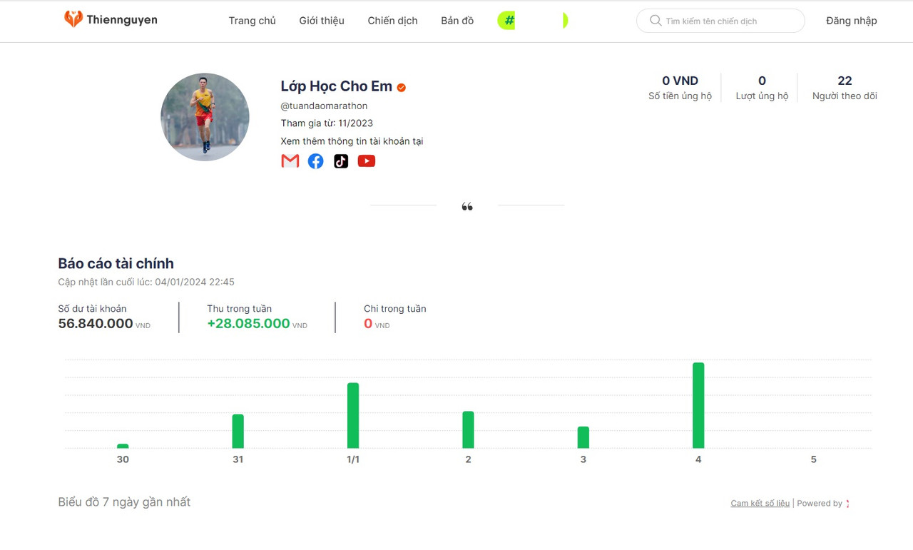 “Mình chưa công bố ngay vì hành trình chạy chưa được nhiều. Đến khi còn 30 ngày hoàn thành thử thách mình mới công bố chiến dịch gây quỹ này. Và hiện tại mình đã hoàn thành 365 ngày chạy Half Marathon liên tục.
